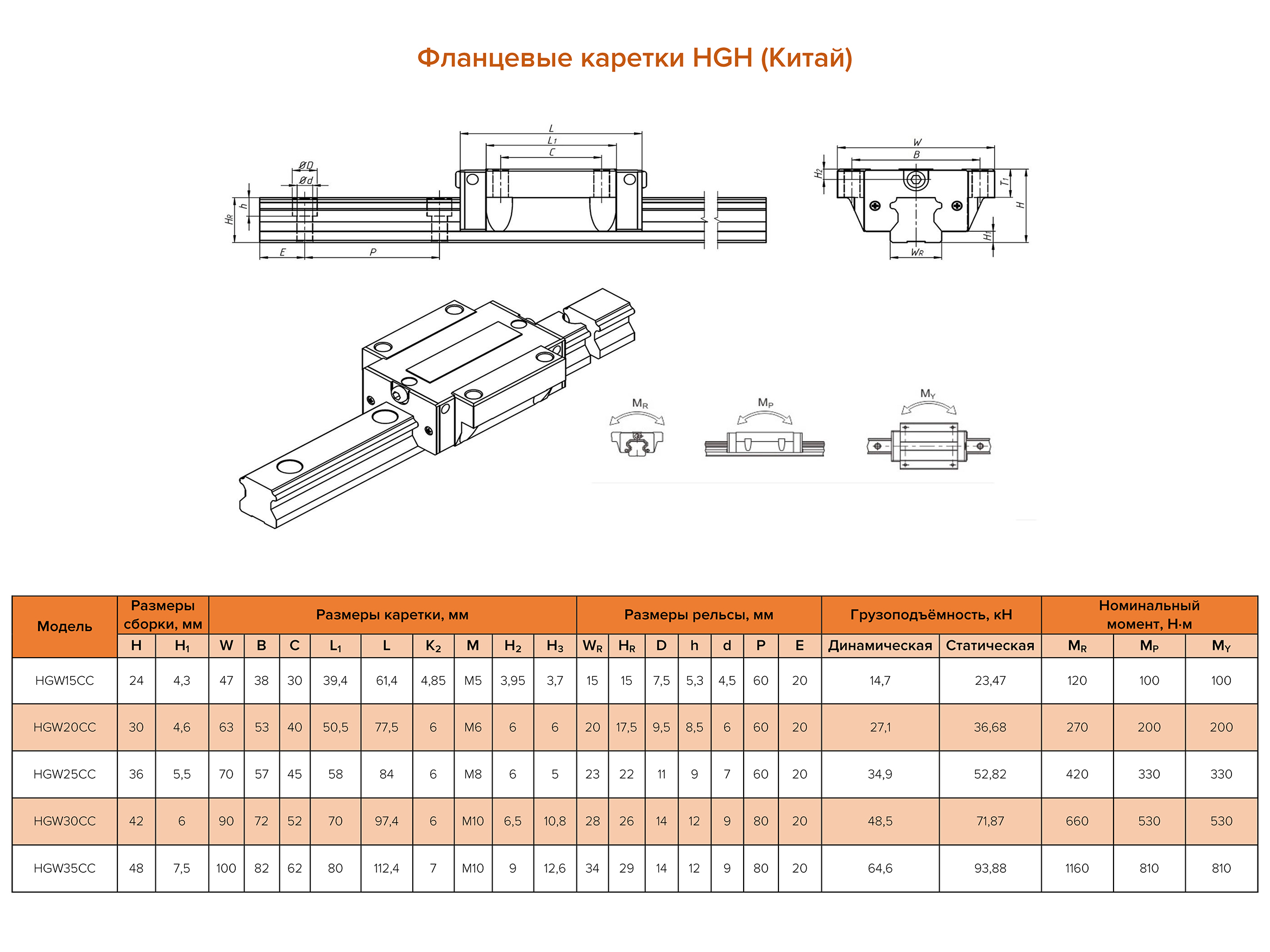 Каретка (модуль линейного перемещения) профильных рельсов HGH (Китай). Состоят из корпуса, в котором расположены 2 ряда металлических шариков, их перемещение происходит в замкнутом контуре. Для смазки предусмотрены отверстия, в которые вворачивается пресс-масленка.