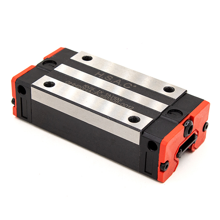 Каретки (модули линейного перемещения) для профильных рельсов GR серии GHR. Производитель - HSAC (Тайвань). Состоят из корпуса, в котором расположены 2 ряда металлических шариков, их перемещение происходит в замкнутом контуре. Для смазки предусмотрены отверстия, в которые вворачивается пресс-масленка.