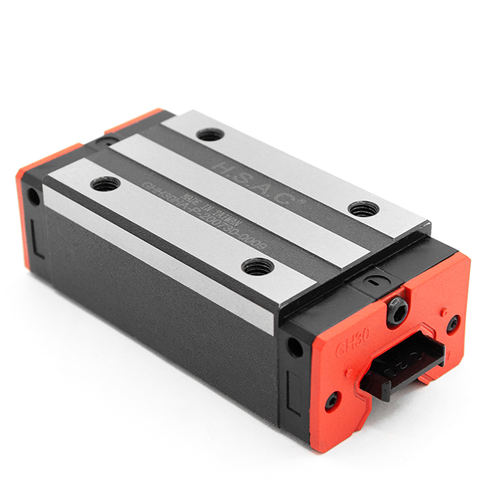 Каретки (модули линейного перемещения) для профильных рельсов GR серии GHR. Производитель - HSAC (Тайвань). Состоят из корпуса, в котором расположены 2 ряда металлических шариков, их перемещение происходит в замкнутом контуре. Для смазки предусмотрены отверстия, в которые вворачивается пресс-масленка.