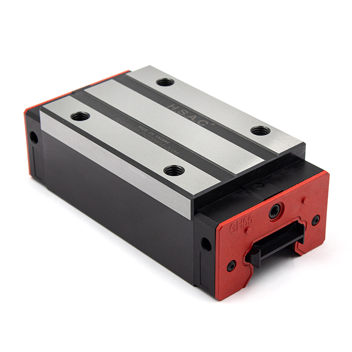 Каретки (модули линейного перемещения) для профильных рельсов GR серии GHR. Производитель - HSAC (Тайвань). Состоят из корпуса, в котором расположены 2 ряда металлических шариков, их перемещение происходит в замкнутом контуре. Для смазки предусмотрены отверстия, в которые вворачивается пресс-масленка.