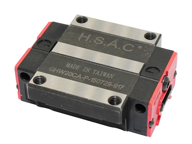 Каретки (модули линейного перемещения) для профильных рельсов GR серии GHR. Производитель - HSAC (Тайвань). Состоят из корпуса, в котором расположены 2 ряда металлических шариков, их перемещение происходит в замкнутом контуре. Для смазки предусмотрены отверстия, в которые вворачивается пресс-масленка.