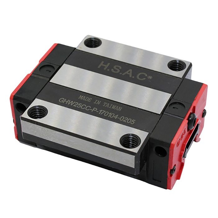 Каретки (модули линейного перемещения) для профильных рельсов GR серии GHR. Производитель - HSAC (Тайвань). Состоят из корпуса, в котором расположены 2 ряда металлических шариков, их перемещение происходит в замкнутом контуре. Для смазки предусмотрены отверстия, в которые вворачивается пресс-масленка.