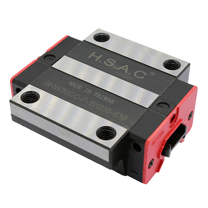 Каретки (модули линейного перемещения) для профильных рельсов GR серии GHR. Производитель - HSAC (Тайвань). Состоят из корпуса, в котором расположены 2 ряда металлических шариков, их перемещение происходит в замкнутом контуре. Для смазки предусмотрены отверстия, в которые вворачивается пресс-масленка.