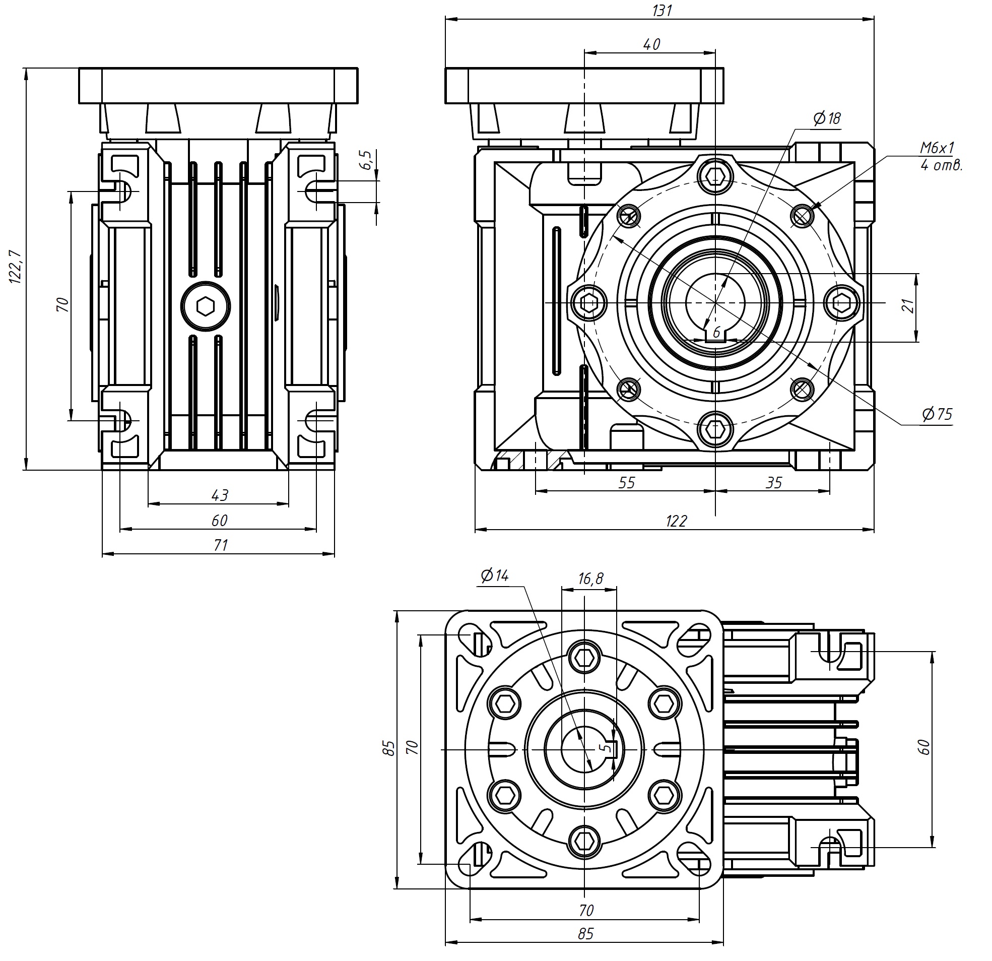 Червячный редуктор с передаточным соотношением 1:80 для шаговых двигателей NEMA 34.