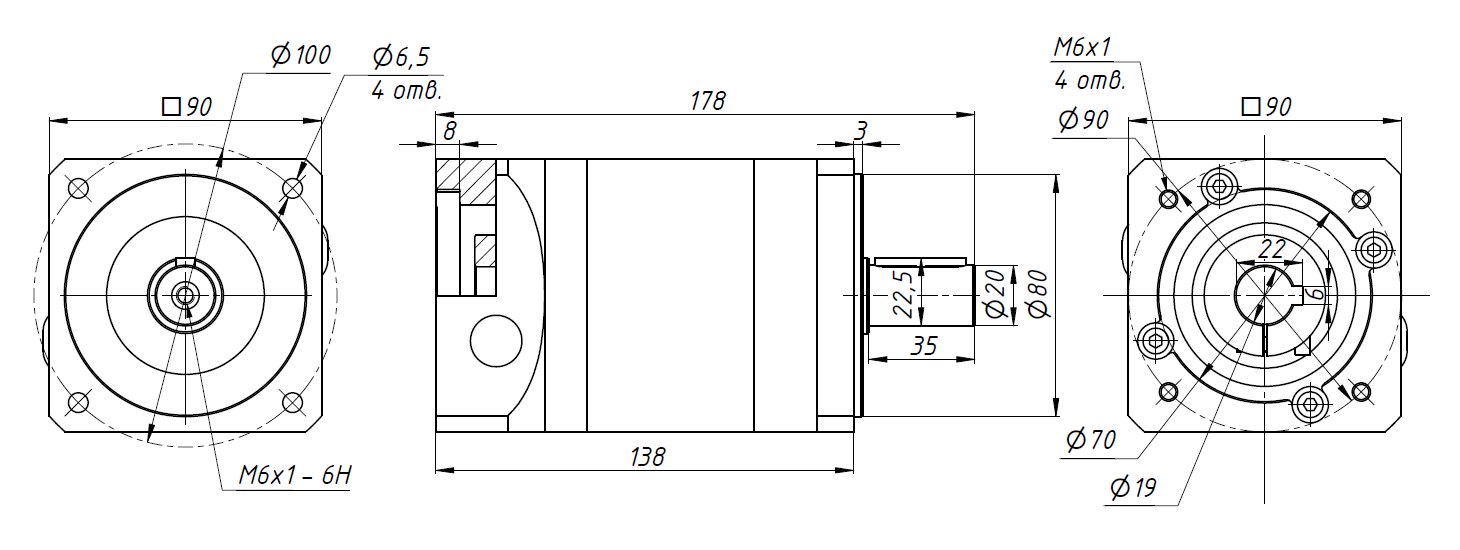 Планетарный редуктор с квадратным монтажным фланцем серии PGE. Данная серия обладает высокими КПД и точностью, а также малым люфтом.