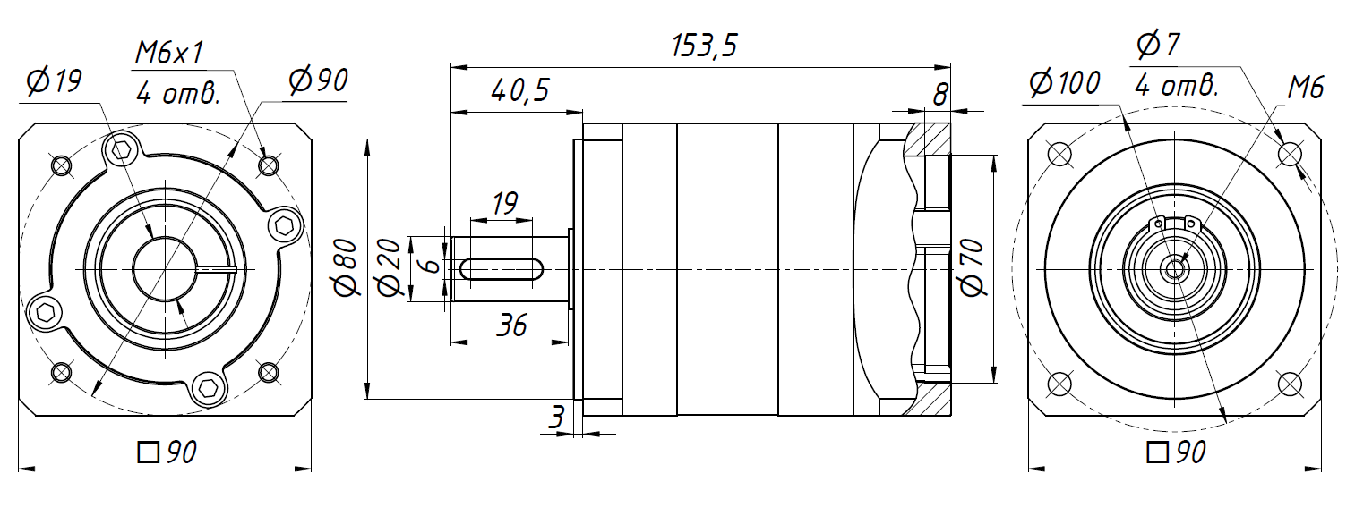 Планетарный редуктор с крепежным фланцем серии PLF. Данная серия обладает высокими КПД и точностью, а также малым люфтом.