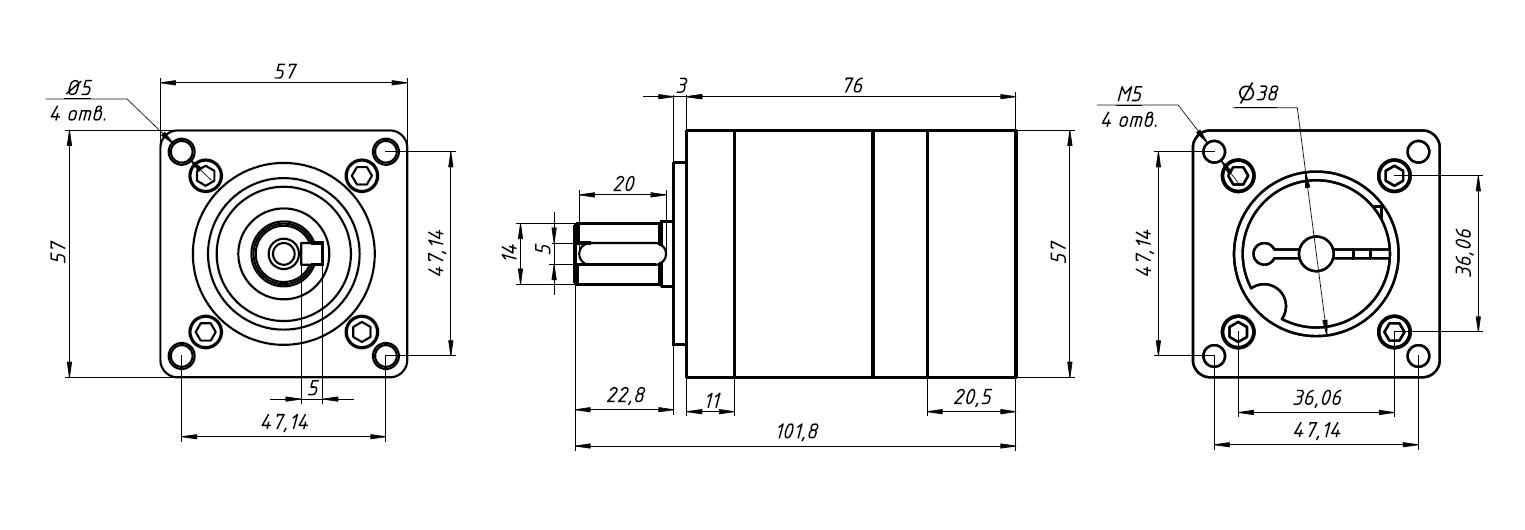 Одноступенчатый планетарный редуктор с крепежным фланцем для шаговых двигателей типоразмера 57 мм (NEMA23). Фиксация вала происходит за счет стягивания вала двигателя диаметром 8 мм. Планетарные редукторы в сравнении с червячными и цилиндрическими обладают такими преимуществами, как соосность входного и выходного вала, а также высоким КПД.