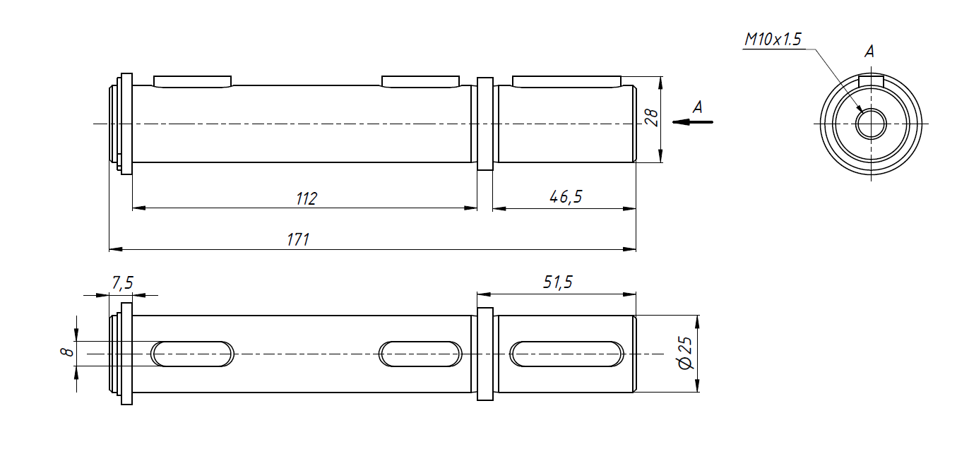 Односторонний выходной вал для червячного редуктора. Предназначен для установки в выходном отверстии червячного редуктора серии NMRV63.