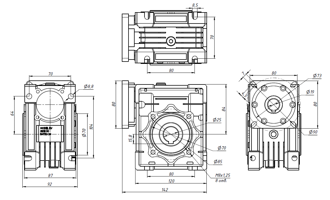 Серводвигатель 80DNMA2-0D75DKAM с червячным редуктором NMRV50 120
