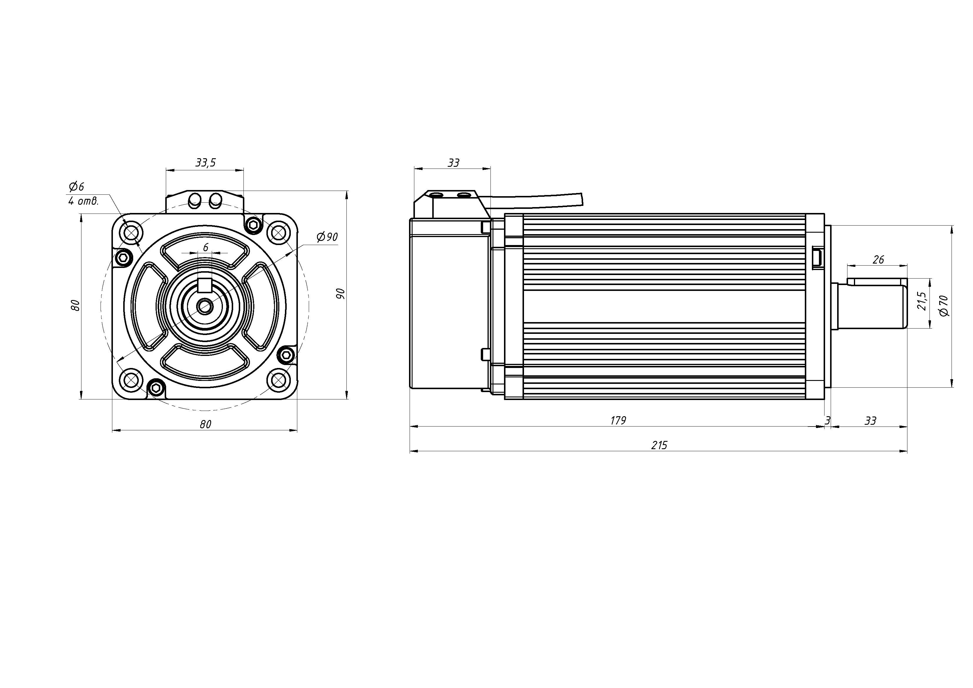 Бесщеточный синхронный двигатель переменного тока. Конструкция позволяет использовать серводвигатель в широком спектре задач промышленной автоматизации.