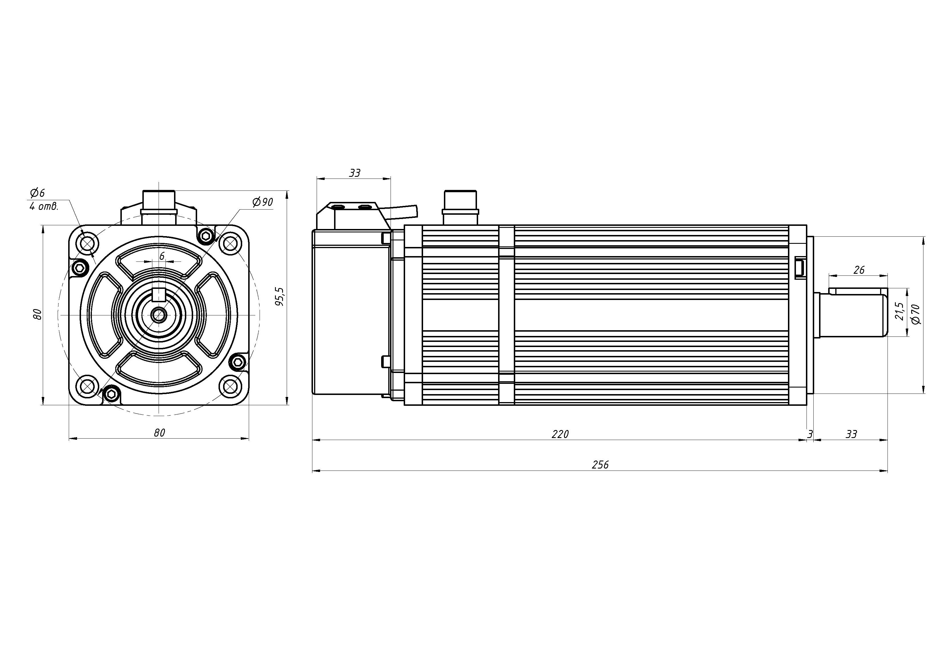 Бесщеточный синхронный двигатель переменного тока. Конструкция позволяет использовать серводвигатель в широком спектре задач промышленной автоматизации.