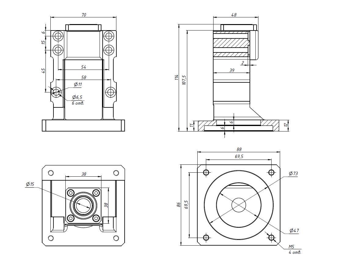 Данный кронштейн представляет собой крепление для шагового двигателя c интегрированным радиально-упорным подшипником типа BK 15. Такое исполнение узла обладает высокой жесткостью и упрощает процесс сборки.