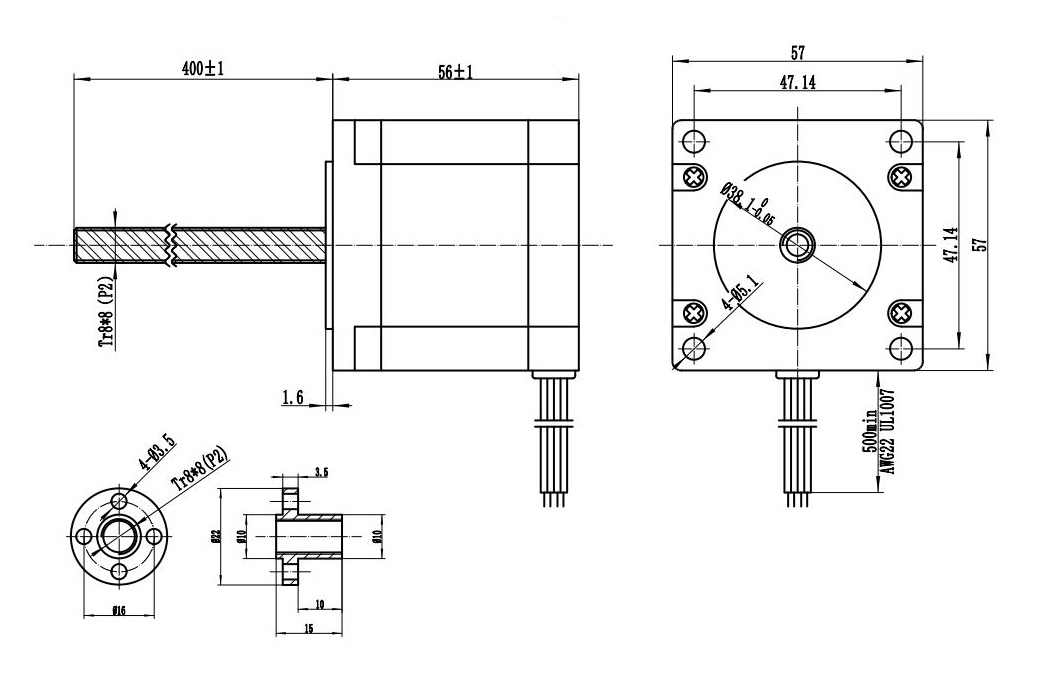 Шаговый двигатель 57HSL56-3004A с Tr8*8 с трапецеидальным винтом Tr8*8 и гайкой.