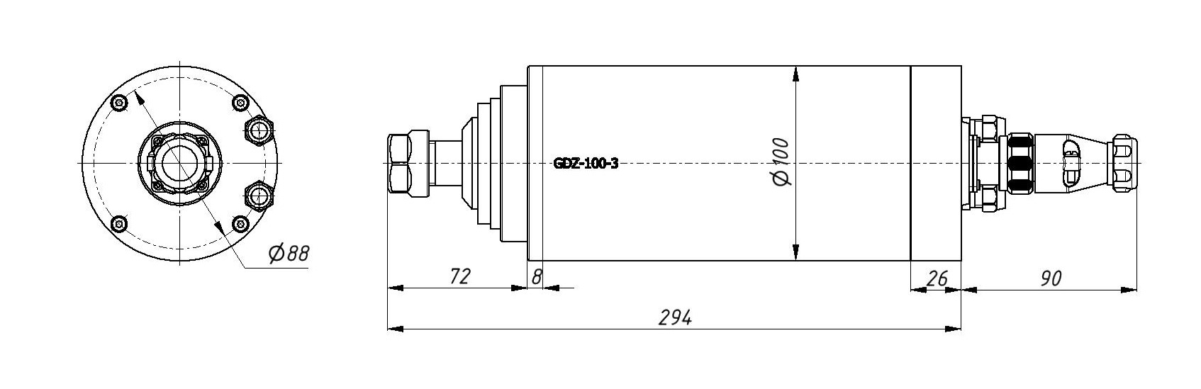 - Шпиндель подходит для использования с широким спектром режущих инструментов, включая фрезы и сверла, что делает его универсальным решением для фрезерной обработки металлов, дерева, пластика, камня и других материалов.