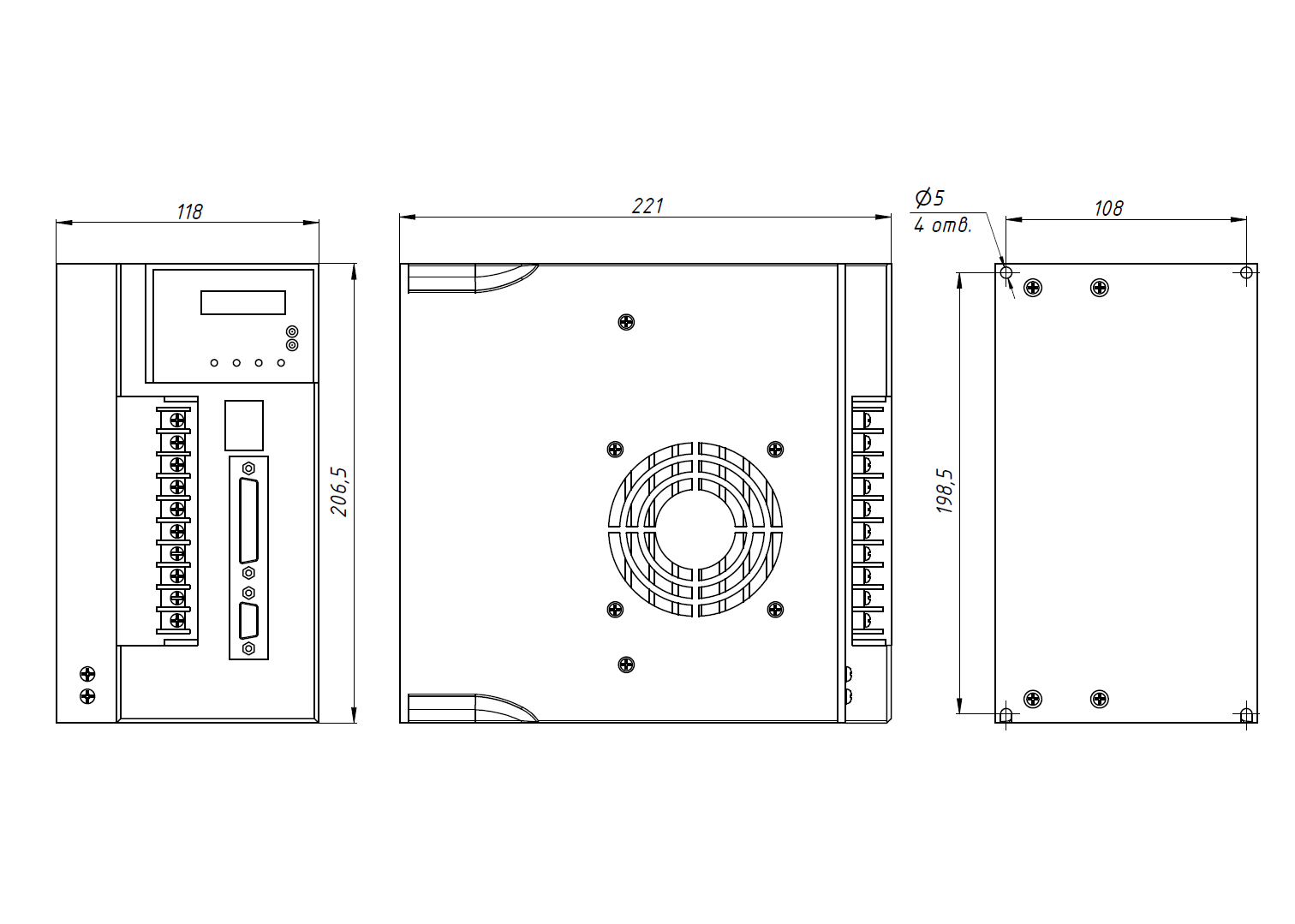 Пятисегментный дисплей позволяет отслеживать значения скорости, момента, сигналов энкодера, отклонение от заданного положения, ток, выходное напряжение, состояние входов и выходов, режим управления, код ошибки, и т.д. |