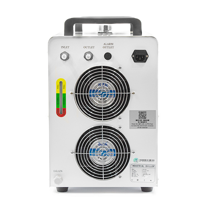 Модель CW-5200 – это промышленная система охлаждения с хладагентом (чиллер). Данная модель в основном используется для отвода тепла от лазерных трубок мощностью до 120 Вт в процессе лазерного излучения и поддержания температурного режима электрических шпинделей жидкостного охлаждения мощностью 5,5 кВт и выше, а также охлаждения иного оборудования. Температура охлаждающей жидкости может быть отрегулирована в необходимом диапазоне. Имеет два режима контроля температуры охлаждающей жидкости. Первый – это контроль температуры в заданном диапазоне, второй - регулировка температуры в зависимости от окружающей среды.
