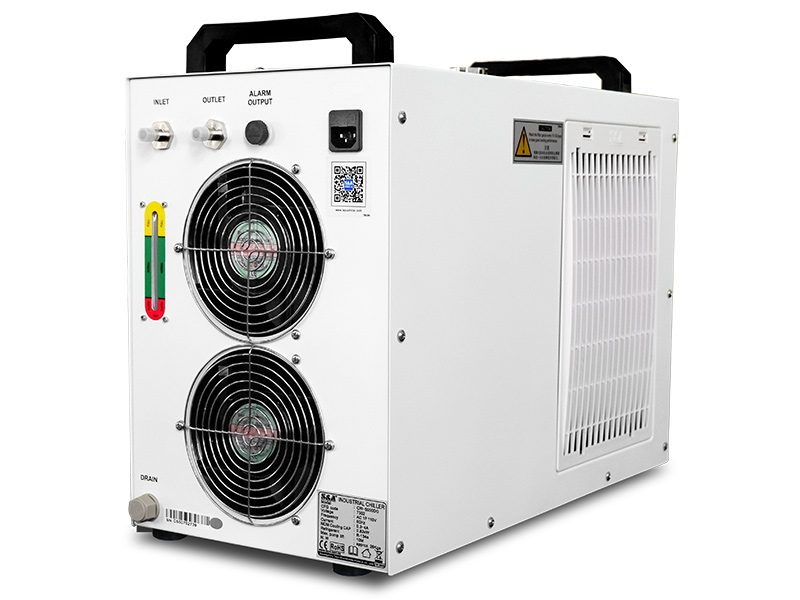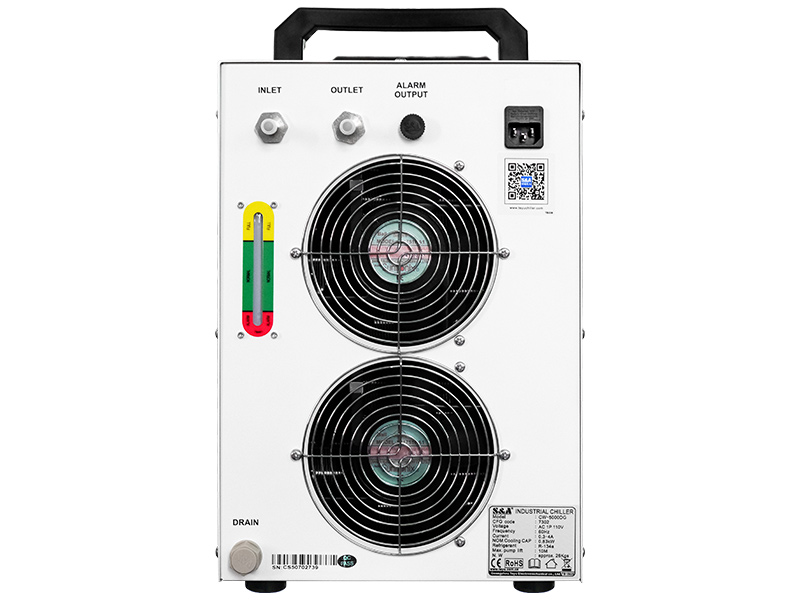 Модель CW-5000TG – это обновленная промышленная система охлаждения с хладагентом (чиллер). Данная модель в основном используется для поддержания температурного режима и отвода тепла от лазерных трубок мощностью до 100 Вт в процессе лазерного излучения, а также охлаждения иного оборудования. Температура охлаждающей жидкости может быть отрегулирована в необходимом диапазоне с точностью до 0,3 °С. Чиллер имеет два режима контроля температуры охлаждающей жидкости. Первый – это контроль температуры в заданном диапазоне, второй - регулировка температуры в зависимости от окружающей среды.