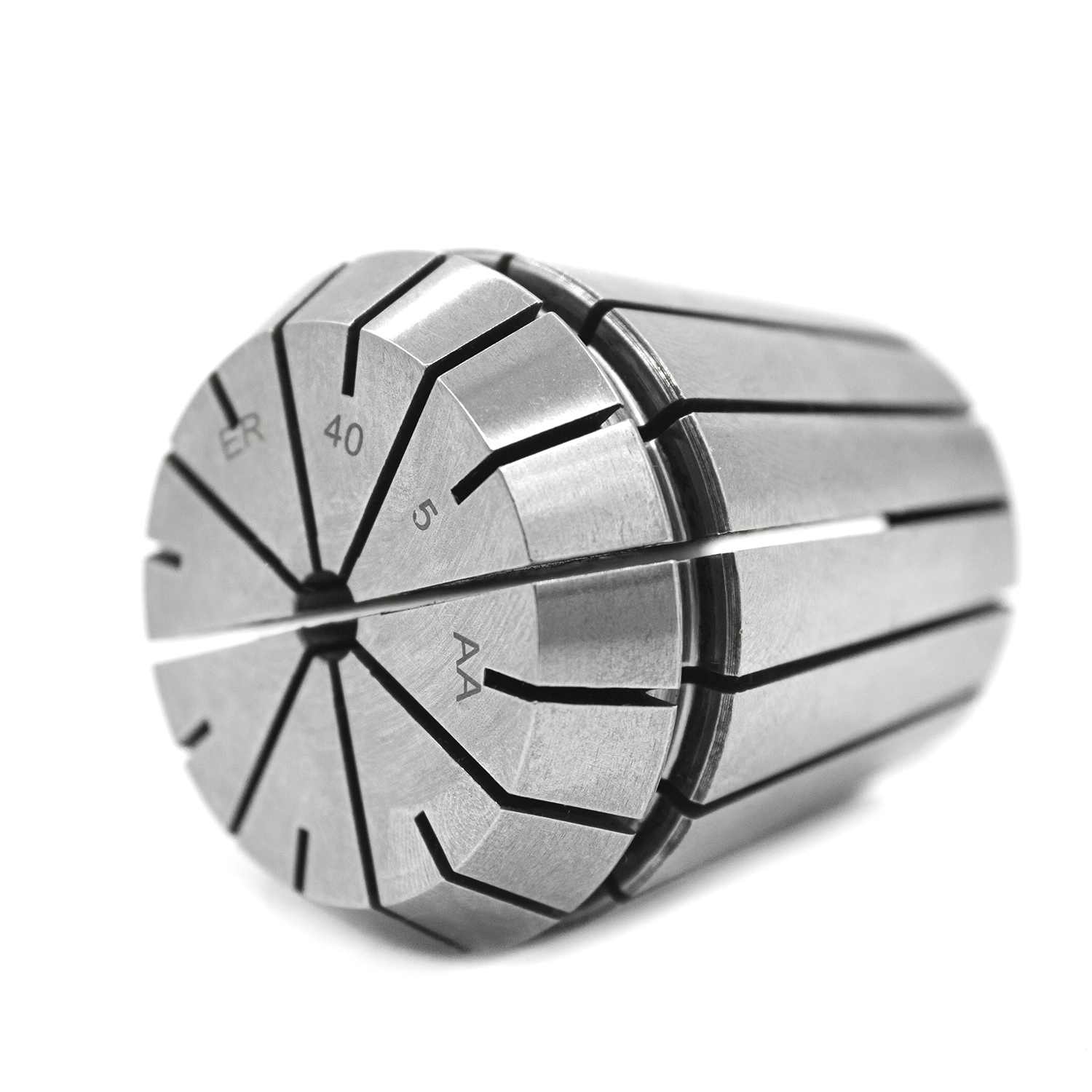 Зажимная цанга для цангового патрона типа ER40 со сквозным отверстием и двумя зонами зажима.