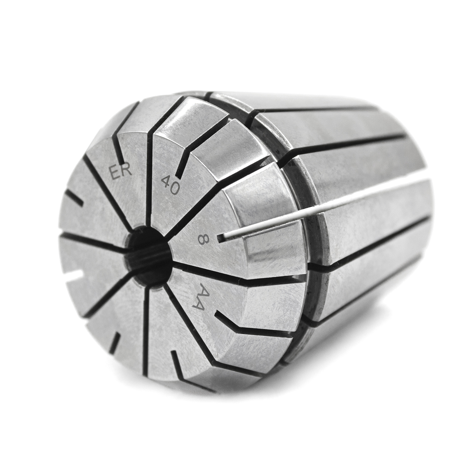 Зажимная цанга для цангового патрона типа ER40 со сквозным отверстием и двумя зонами зажима.