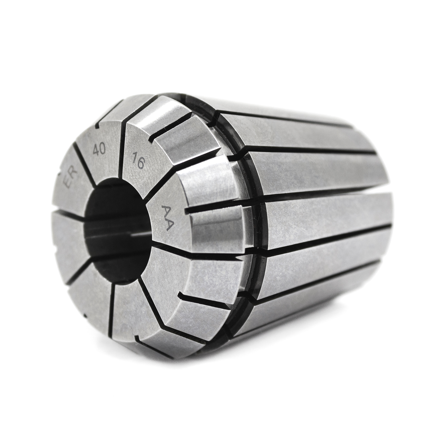 Зажимная цанга для цангового патрона типа ER40 со сквозным отверстием и двумя зонами зажима.