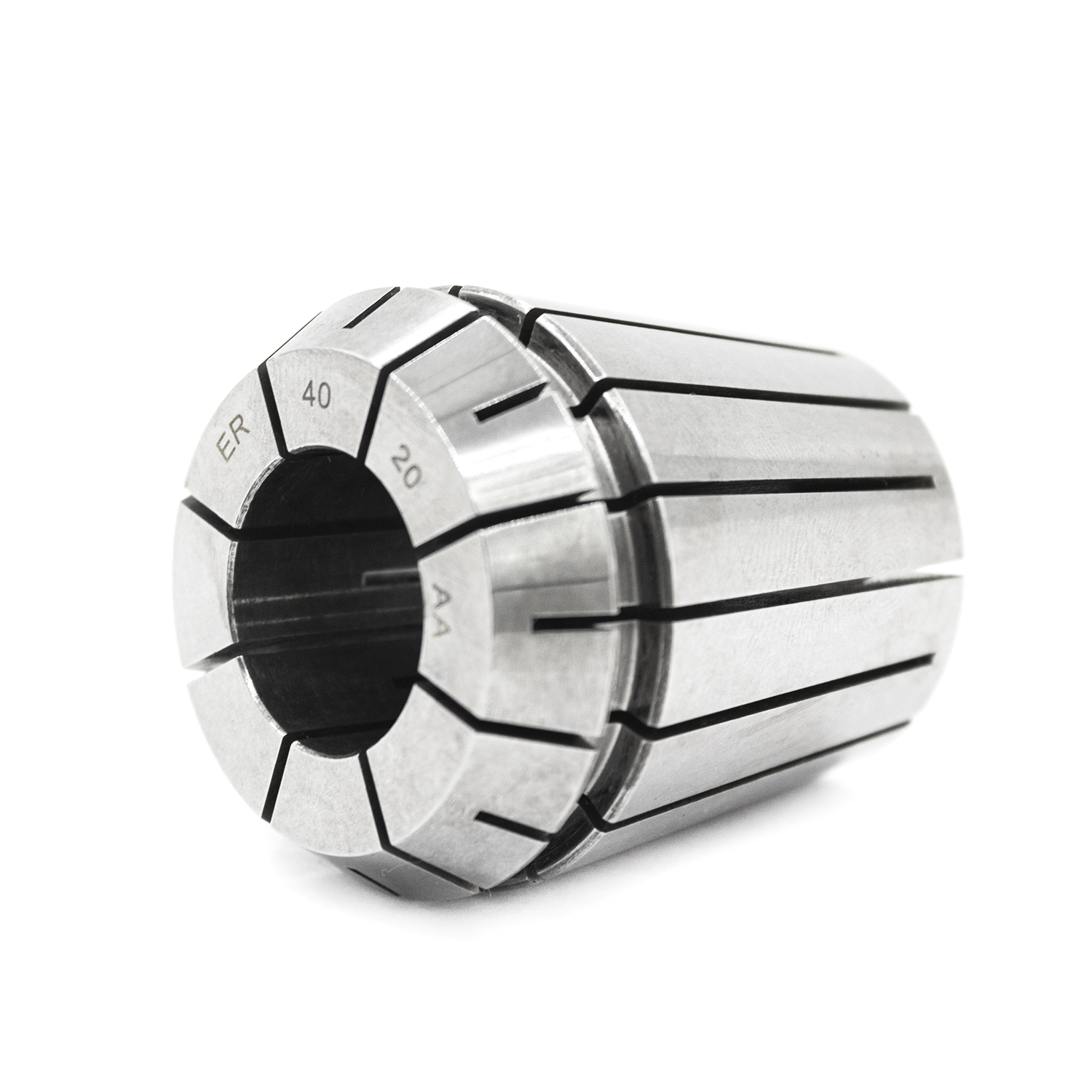 Зажимная цанга для цангового патрона типа ER40 со сквозным отверстием и двумя зонами зажима.