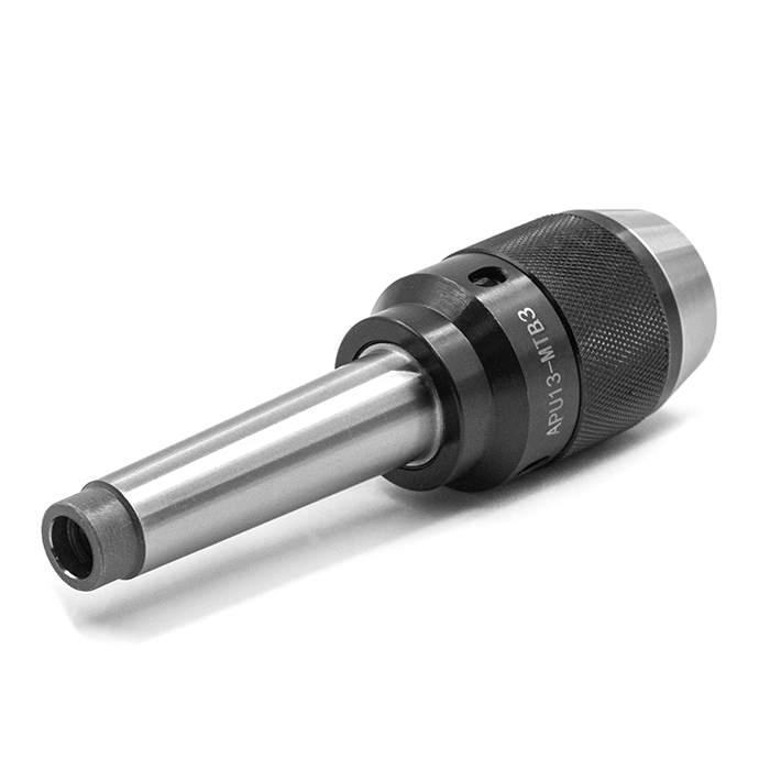 Бесключевой сверлильный патрон MTB-APU (быстрозажимной патрон) применяется на токарных, фрезерных и сверлильных станках для сверления. Оптимальное решение для закрепления сверл из быстрорежущей стали (HSS). Высокоточная оправка, жесткая фиксация хвостовика инструмента тремя кулачками.