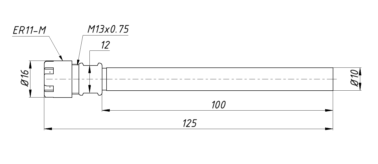 Цанговый зажим ER11-M обеспечивает надежную фиксацию и центирирование инструмента с полным биением менее 0,01 мм.