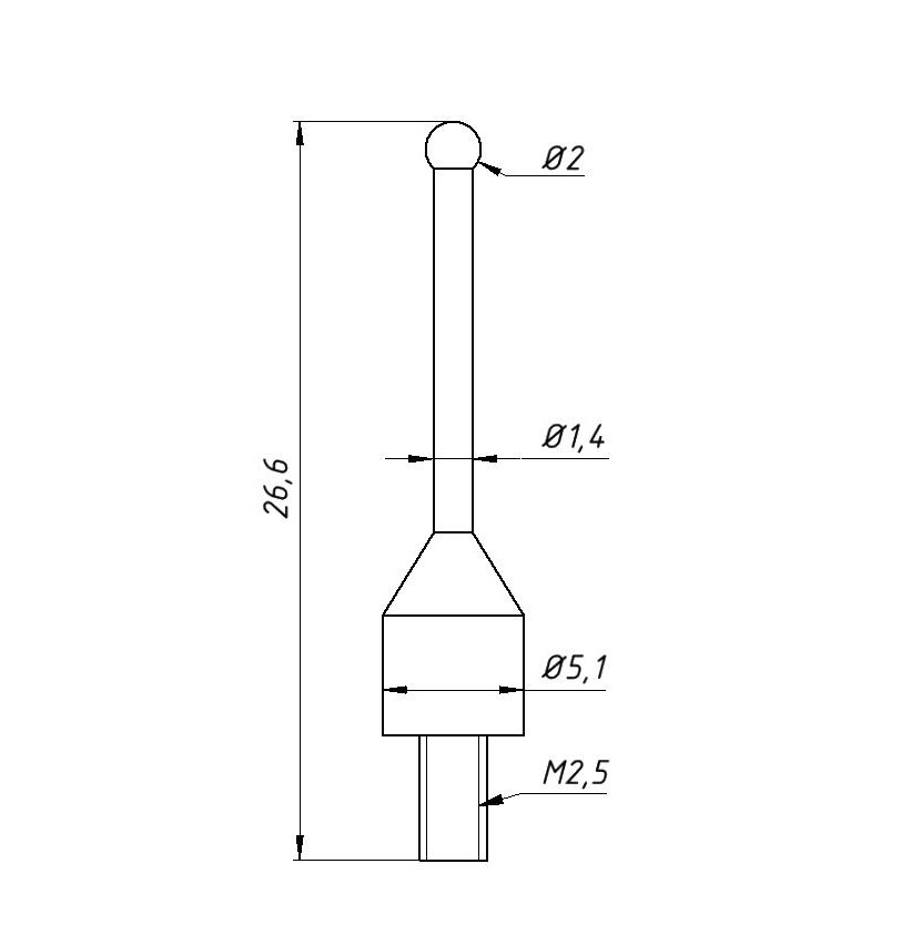 Наконечник центроискателя T05C, шарик ∅2 мм.