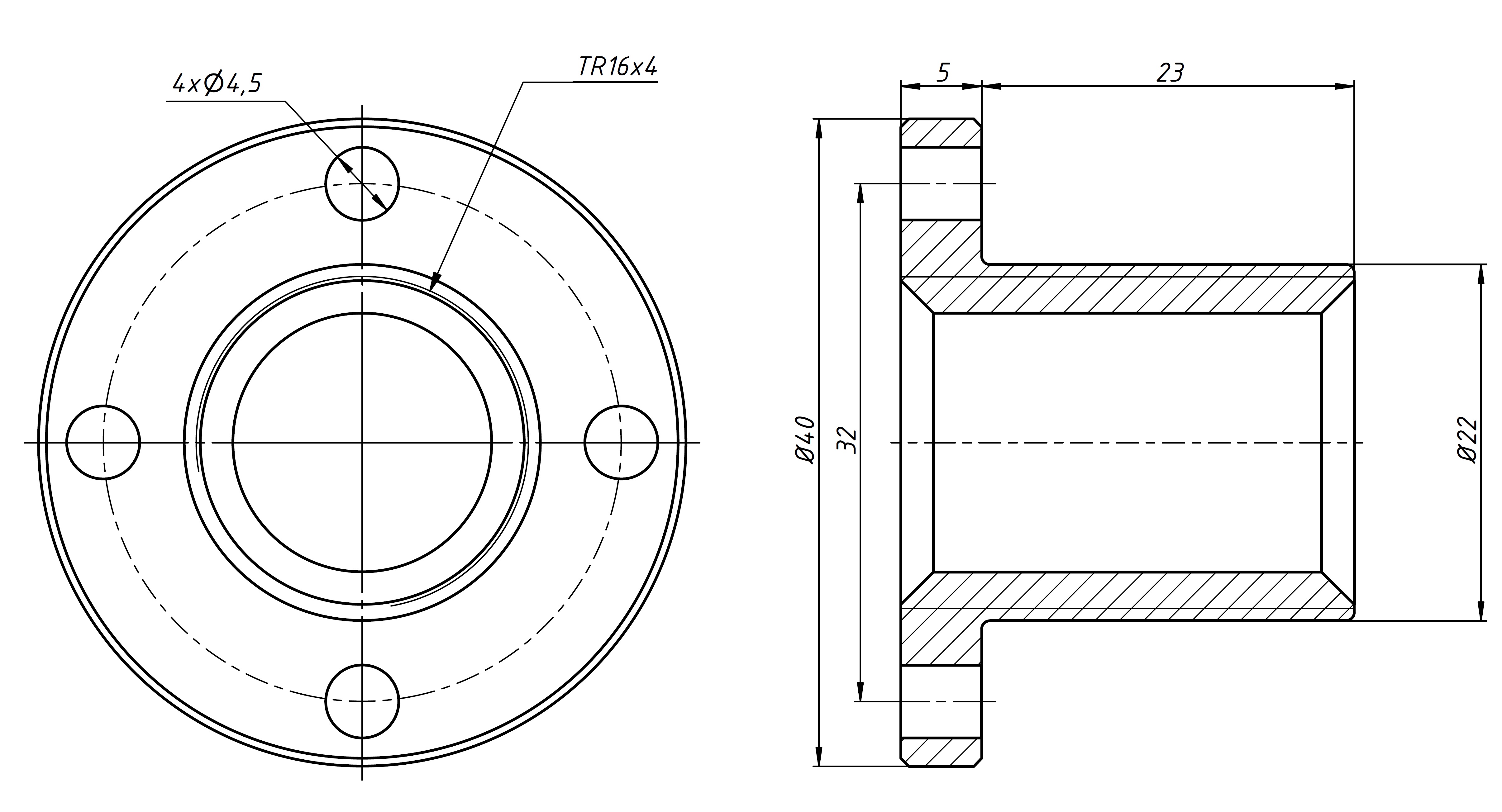 Трапецеидальная гайка с фланцем с однозаходной резьбой.
