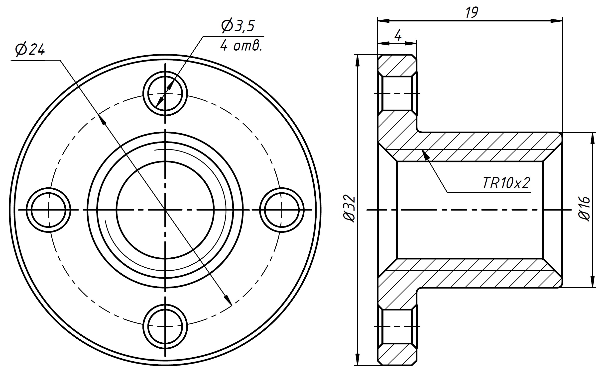 Трапецеидальная гайка с фланцем с однозаходной резьбой.