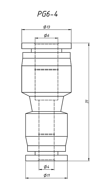 Фитинг прямой PU 6-4 - соединительный элемент для пневматических трубок наружного диаметра 6 и 4 мм. Устанавливается в местах соединения пневматических систем.