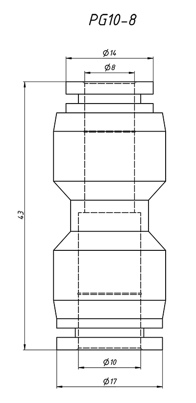 Фитинг прямой PG10-8 - соединительный элемент для пневматических трубок наружного диаметра 10 и 8 мм. Устанавливается в местах соединения пневматических систем.