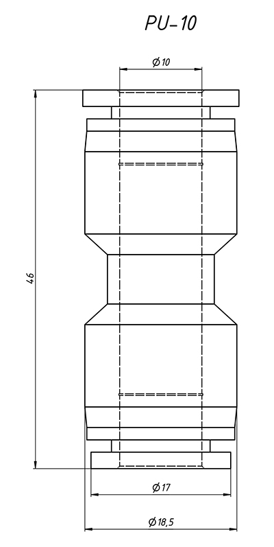 Фитинг прямой PU-10 - соединительный элемент для пневматических трубок наружного диаметра 10 мм. Устанавливается в местах соединения пневматических систем.