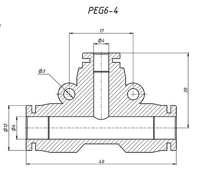 Фитинг Т-образный PEG6-4 - соединительный переходной элемент для пневматических трубок наружного диаметра 6 и 4 мм. Устанавливается в местах разветвления пневматических систем.