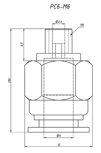 Фитинг прямой шестигранный с резьбой M6 и уплотнительным кольцом. Соединительный элемент для пневматических трубок наружного диаметра 6 мм. Устанавливается в местах соединения пневматических систем.