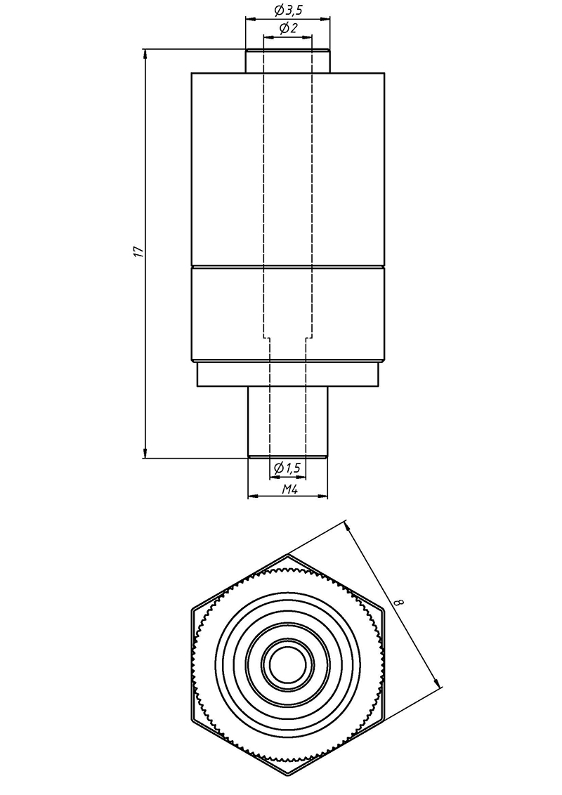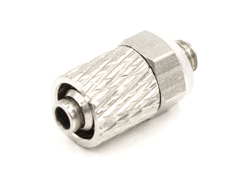 Фитинг прямой шестигранный с резьбой M4. Соединительный элемент для пневматических трубок наружного диаметра 6 мм. Устанавливается в местах соединения пневматических систем.