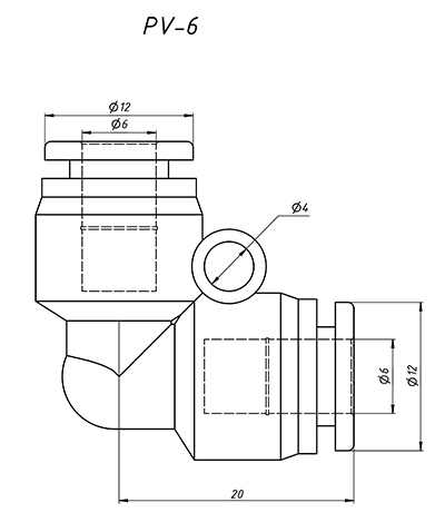 Фитинг Г-образный для пневматических трубок наружного диаметра 6 мм. Устанавливается в местах соединения пневматических систем.