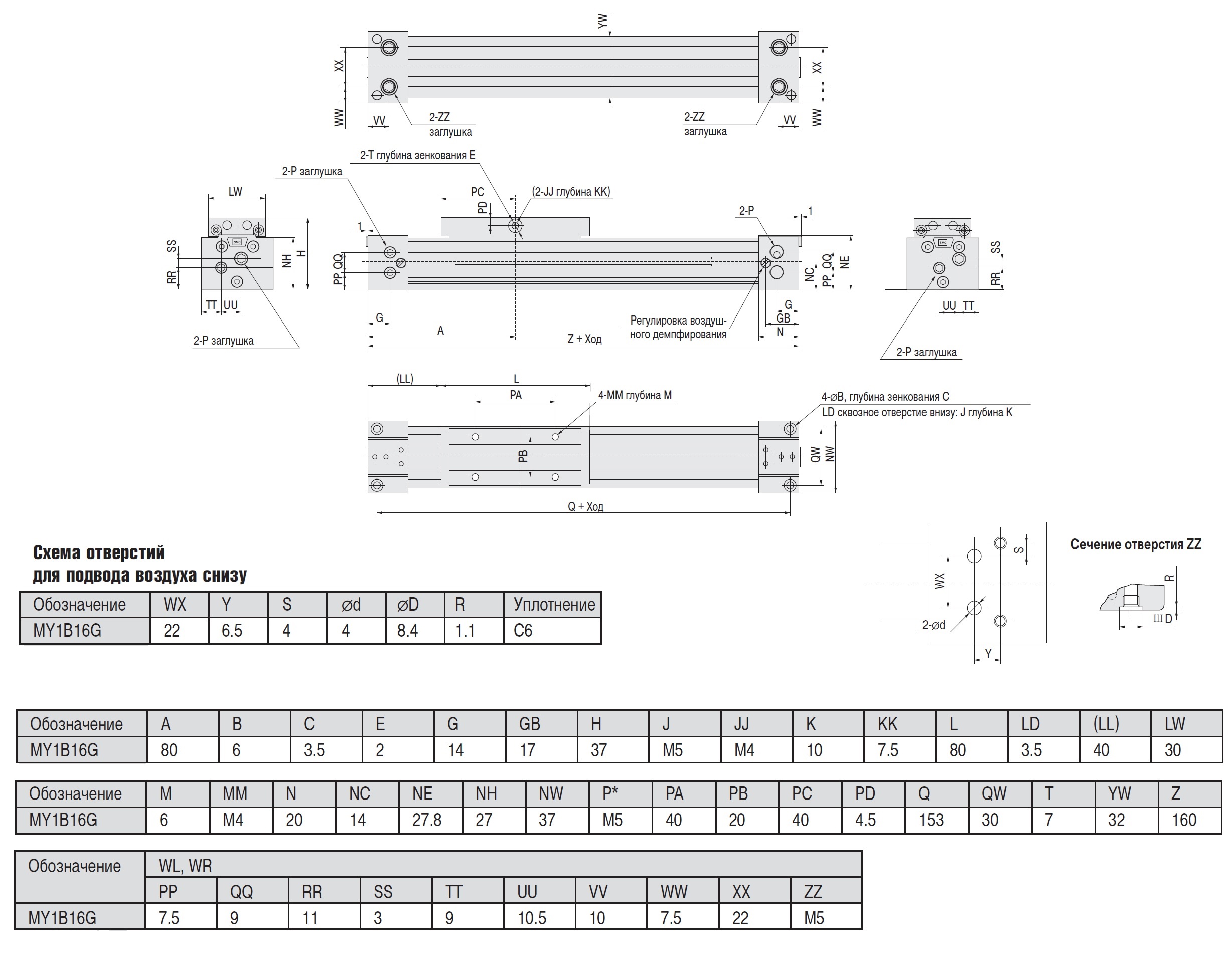 Бесштоковый пневмоцилиндр MY1B16/MY1B16G—700.