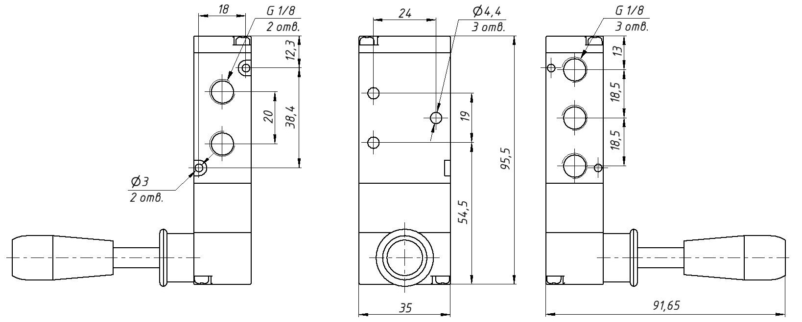 Пневмораспределитель 4H230-06 ручного типа служит для управления направлением движения потоков сжатого воздуха. Управление осуществляется за счет переключения схемы соединения внутренних каналов распределителя с входными и выходными присоединительными отверстиями.