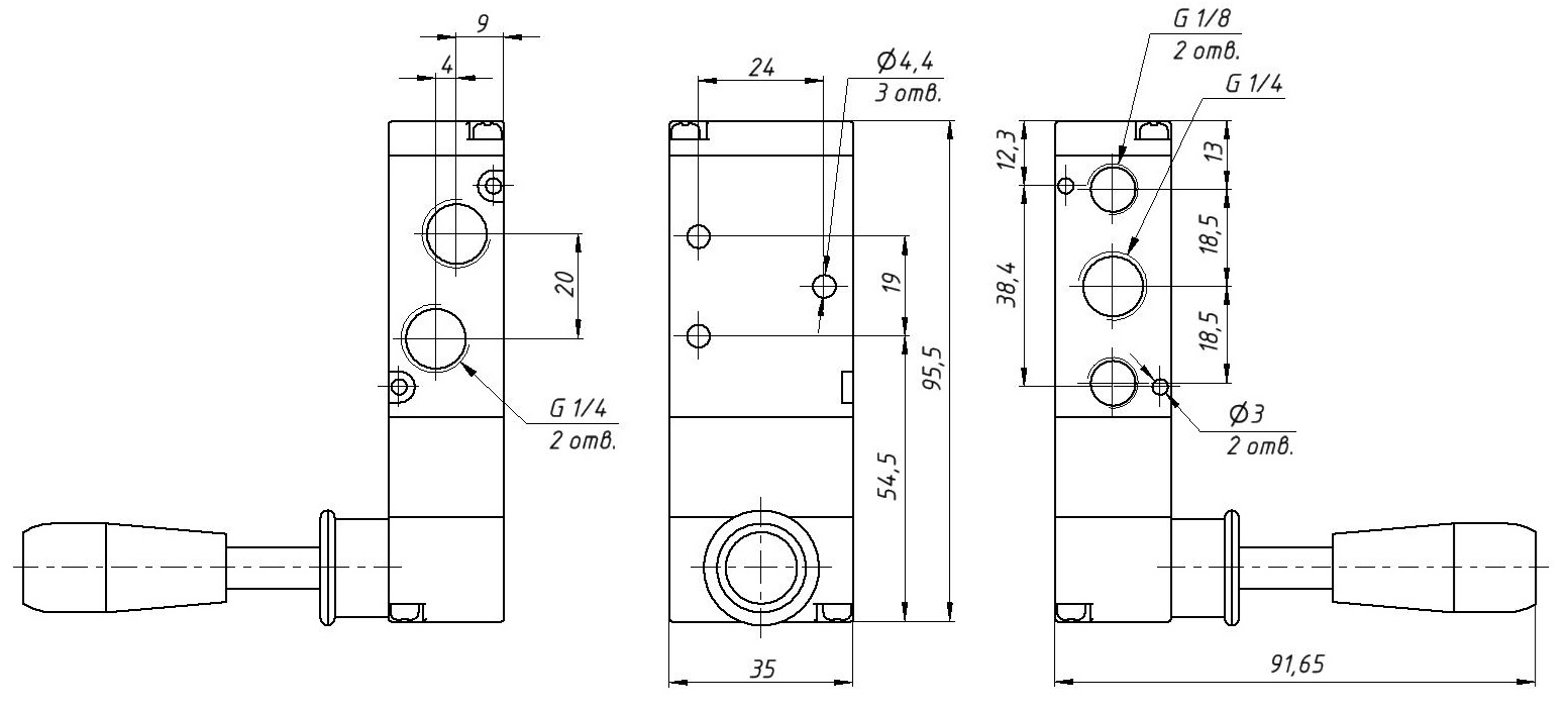 Пневмораспределитель 4H230-08 ручного типа служит для управления направлением движения потоков сжатого воздуха. Управление осуществляется за счет переключения схемы соединения внутренних каналов распределителя с входными и выходными присоединительными отверстиями.