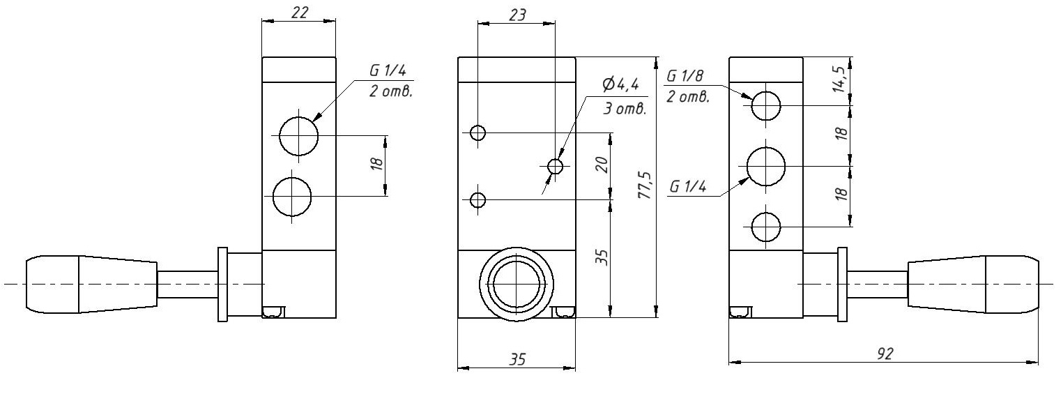 Пневмораспределитель 4H210-08 ручного типа служит для управления направлением движения потоков сжатого воздуха. Управление осуществляется за счет переключения схемы соединения внутренних каналов распределителя с входными и выходными присоединительными отверстиями.