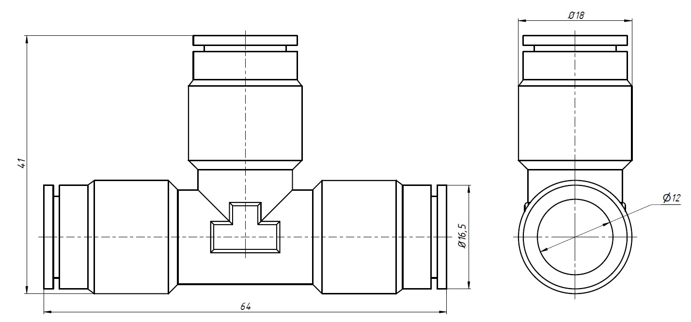Фитинг Т-образный XJKH-3T-12 - соединительный элемент для пневматических трубок наружного диаметра 12 мм. Устанавливается в местах разветвления пневматических систем.