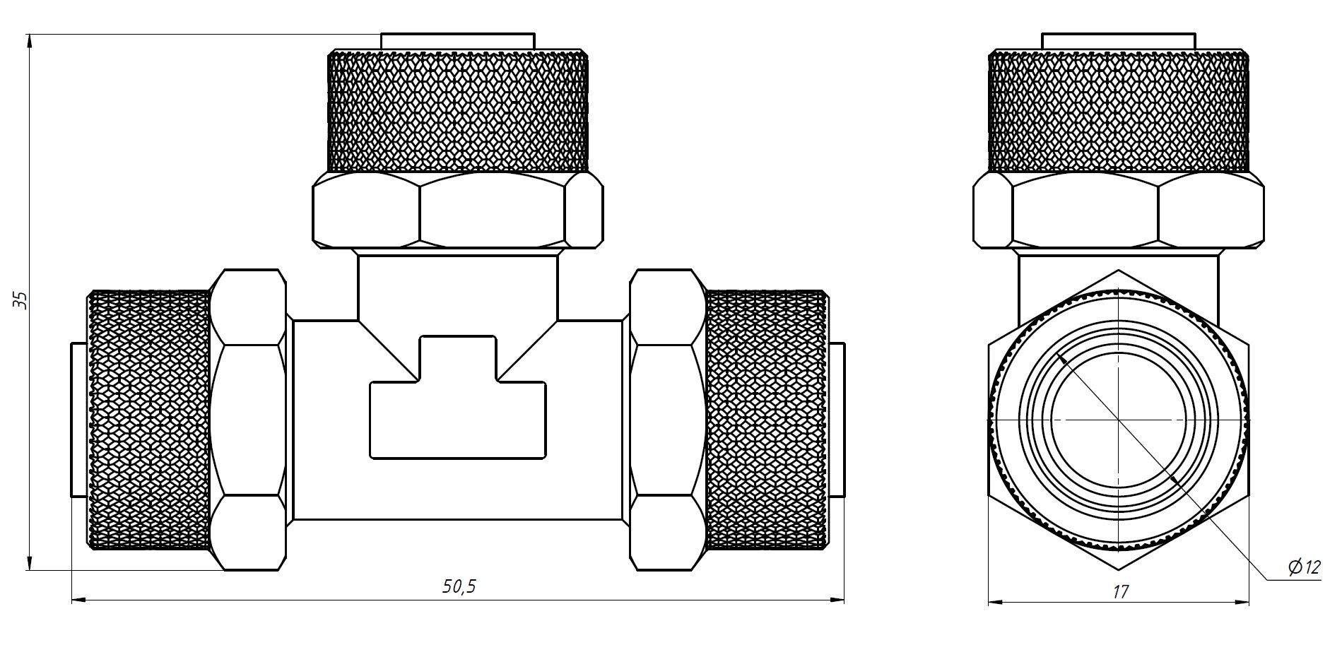 Фитинг Т-образный XJSM-3T-12x10 - соединительный элемент для пневматических трубок наружного диаметра 12 мм. Устанавливается в местах разветвления пневматических систем.