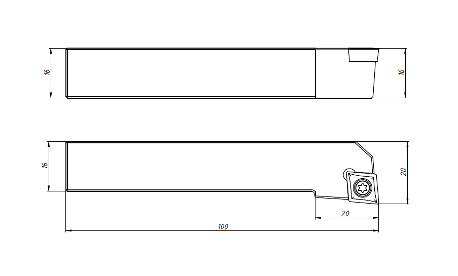 Токарный резец с креплением типа "S" с углом в плане 95° для сменных пластин типа CC*T09T3**.